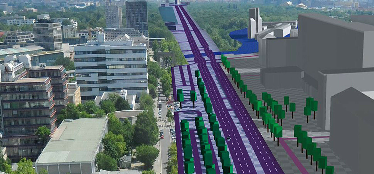 DIGINET-PS is intended as a reference solution for complex traffic situations in urban areas. The test track includes not only the course of the Straße des 17. Juni, but also the secondary streets to the north, thus providing some challenges for networked vehicles and digital infrastructure. In addition to traffic management characteristic of urban areas and typical parking situations, the project needs to consider the protection of listed buildings, environmental protection, and overall urban design.